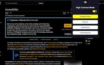 하이 콘트라스트 모드는 웹 페이지 가독성을 향상시키기 위해 조정 가능한 색 구성표를 통해 설계된 Chrome 브라우저용 무료 애드온입니다. 사용자는 증가된 대비, 그레이스케일, 반전 색상 및 반전 그레이스케일을 포함한 여러 옵션 중에서 선택할 수 있어 개인의 선호와 요구에 맞춘 개인화된 보기 경험을 제공합니다.